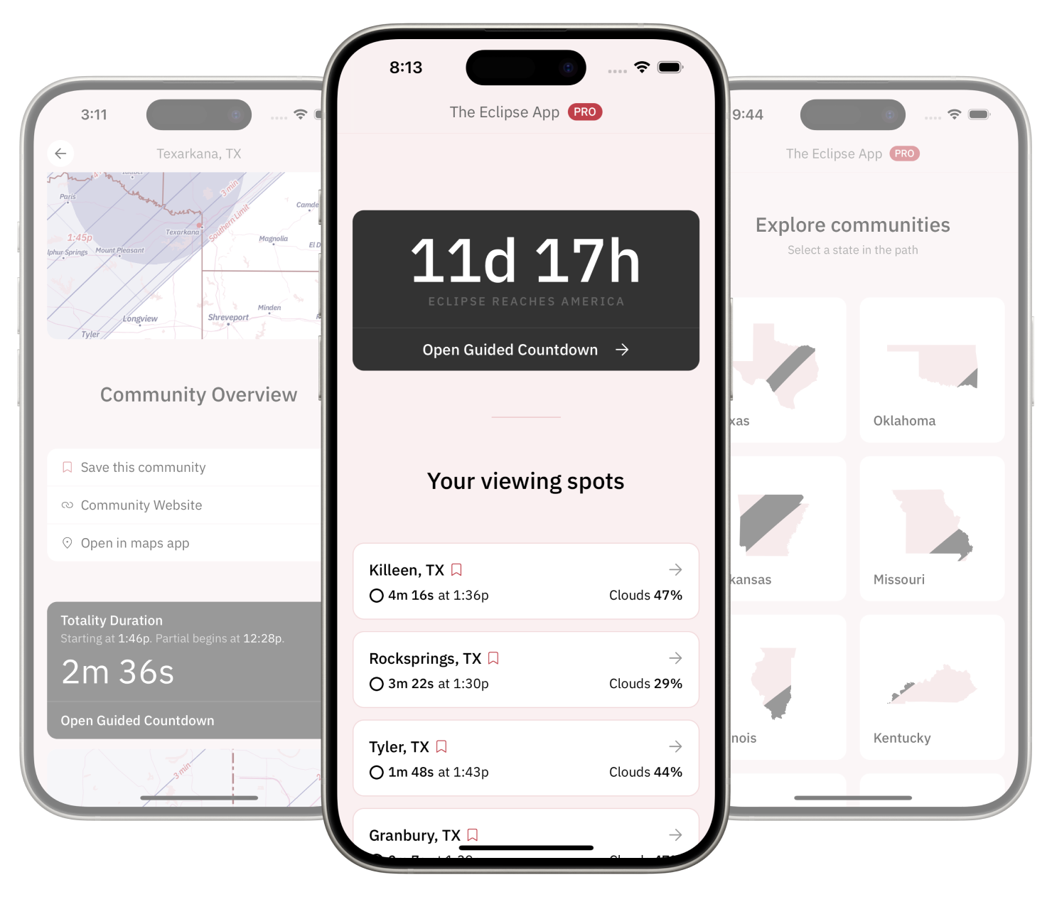 Safely see every secondKnow when totality and eclipse phenomena will start at your exact location.